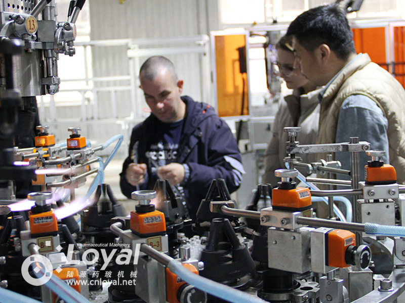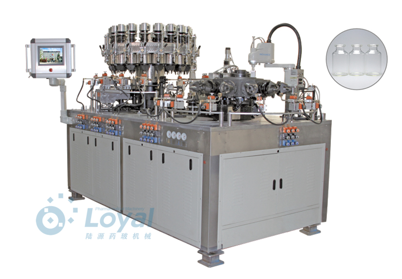 西林瓶生產(chǎn)線包括:自動上管、自動成型、經(jīng)機(jī)械手轉(zhuǎn)換至前端檢測線(也叫生產(chǎn)管控)、檢測線檢測的項(xiàng)目:1、瓶口內(nèi)外徑 2、瓶身長短 3、瓶身外徑 4、瓶口邊厚 5、瓶底內(nèi)凹尺寸檢測;經(jīng)檢測后的合格品再用機(jī)械手夾盤轉(zhuǎn)換至退火爐網(wǎng)帶上,經(jīng)高溫減除應(yīng)力后再降溫,通過氣動吸盤將回火后的小瓶轉(zhuǎn)換至后端檢測線,后端檢測(也是重檢也叫終檢),經(jīng)后端拍照檢測項(xiàng)目